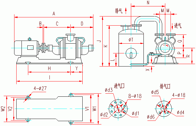 代號 | T | V2 | V1 | W1 | W2 | X | Y | d1 | d2 | d3 | d4 | d5 | d6 | 地腳螺栓 | |
