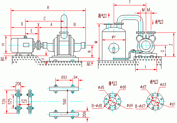SZ-4真空泵 | 2733 | 950 | 175 | 225 | 290 | 150 | 225 | 260 | 18 | 18 | 70 | 575 | M24×630 |